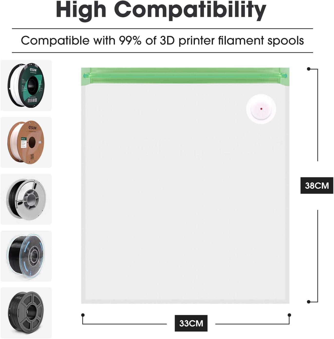 • Reusable Humidity Card: The included humidity indicator card is highly sensitive and reusable, providing a clear visual of the filament's storage conditions.